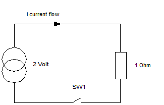 With a continuous supply voltage of two volts across a constant resistance of one ohm, we ha a continuous current flow to 2/1 = 2 Amp.